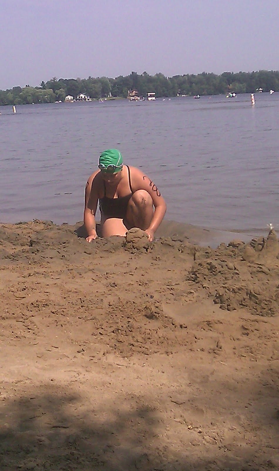 , about 20 swimmers from our team and a few other competitors joined us at Sanford Lake in Sanford, Michigan for our first ever Open Water swim meet. Open Water is basically any swim competition that does not take place in a pool. There were several events in which swimmers could participate: 2 mile, 1.5 mile, 1 mile and .5 mile. Swimmers in Lexy's age group could only do the half mile. I think this was a great way to get her feet wet (if you'll pardon the pun) with open water events.
